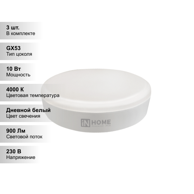 Купить (3 шт.) Светодиодная лампочка IN HOME 10Вт 230В 4000К GX53