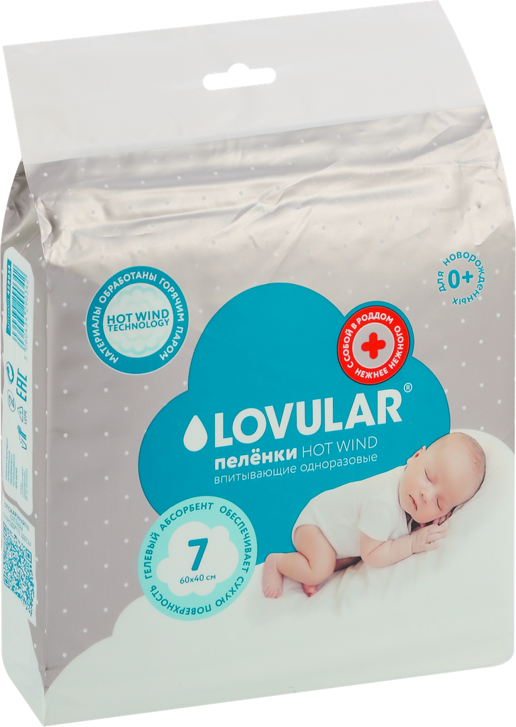 Купить Пеленки одноразовые детские LOVULAR Hot Wind впитывающие 60x40см, 7шт