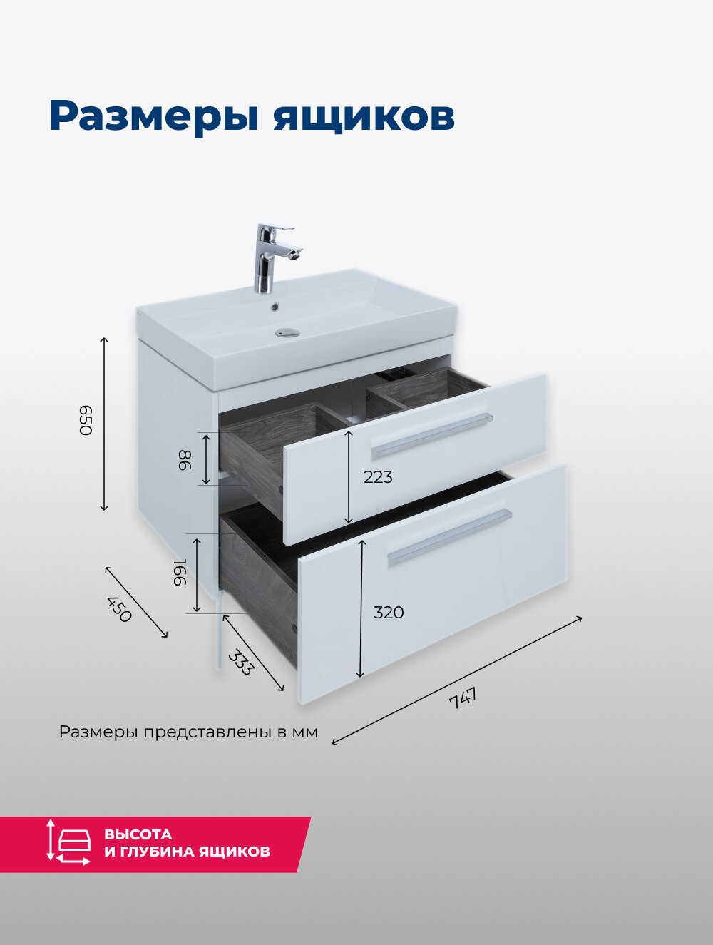 | Комплектация | Тумба под раковину, Ручки и ножки в комплект не входят |