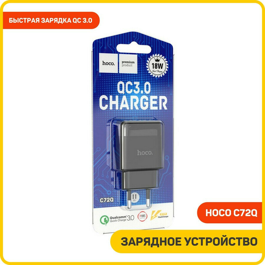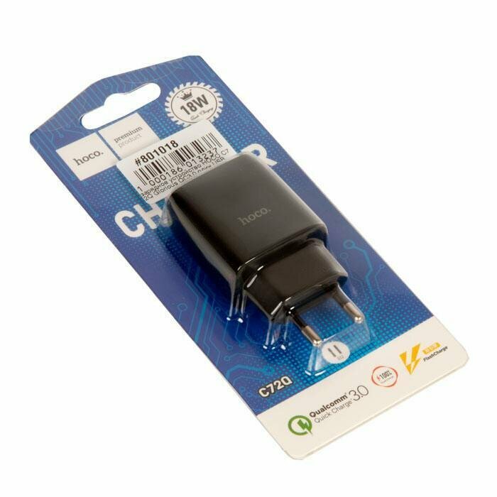 Сетевое зарядное устройство Hoco C72Q, 18 Вт, USB QC3.0 - 3 А, черный