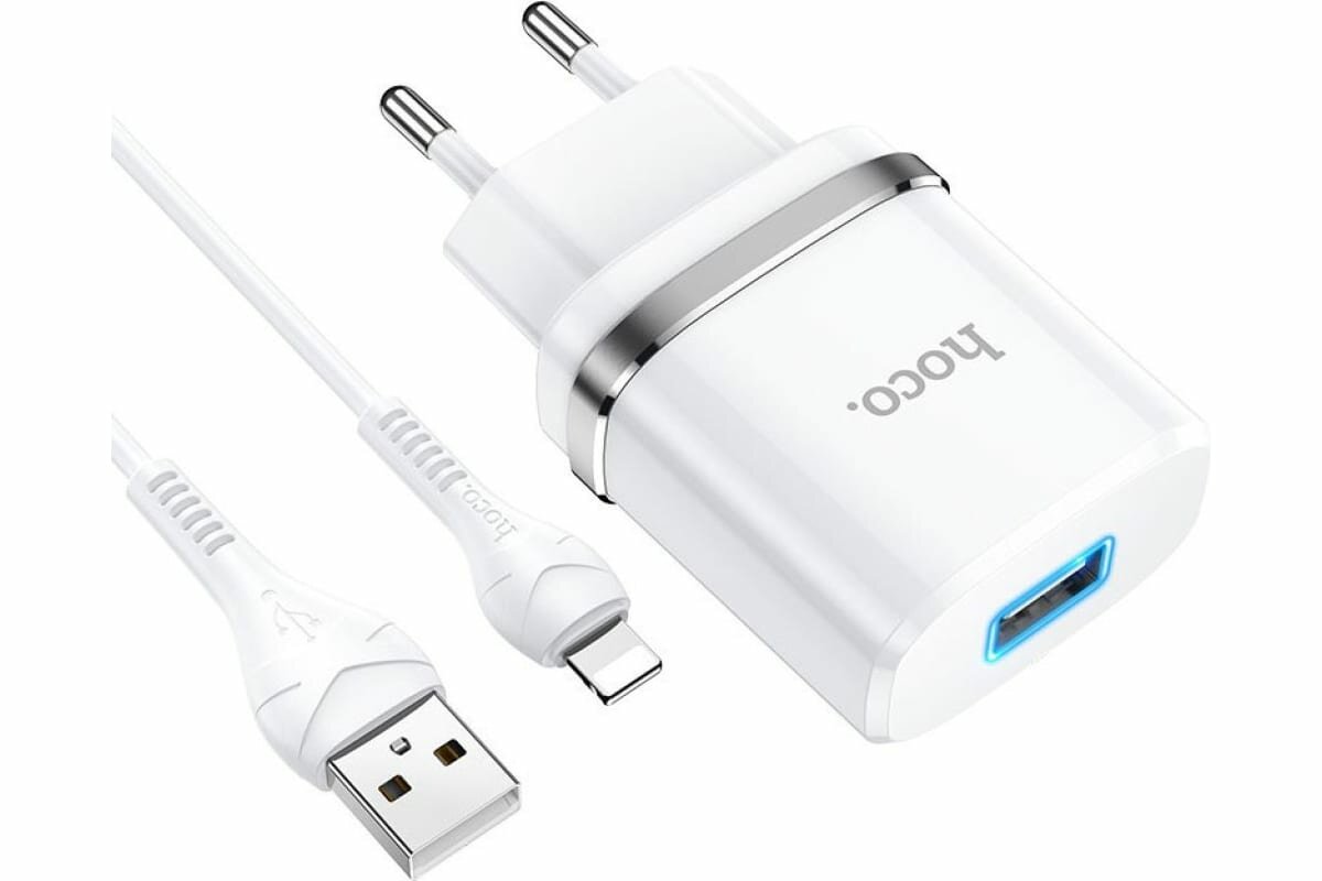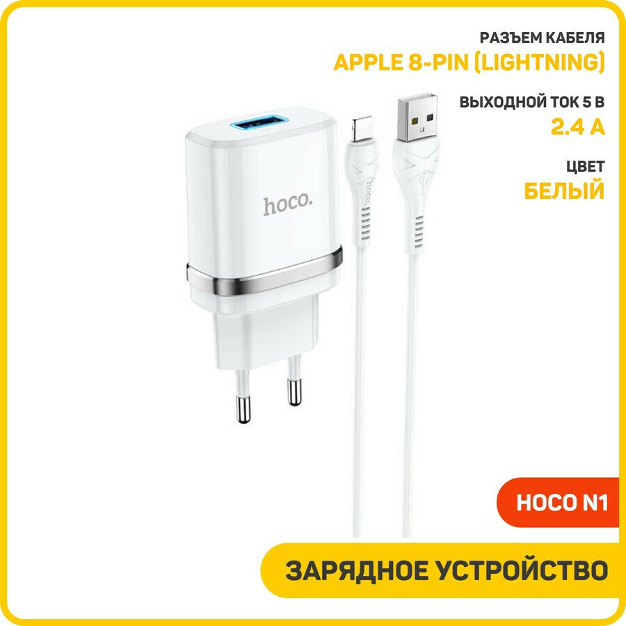 СЗУ Hoco N1 Ardent, один порт USB 2.4A, с кабелем Lightning 8-pin, белый