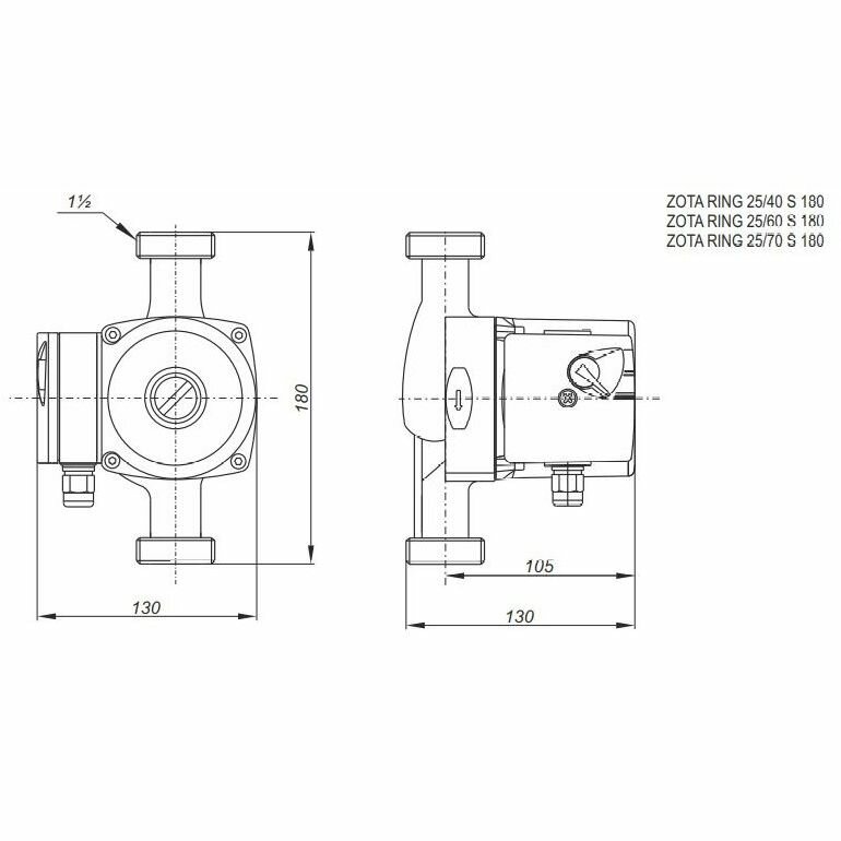 Циркуляционный насос RING 25/80 S 180 с гайками, 1х230 В, ZOTA ZR3630082302