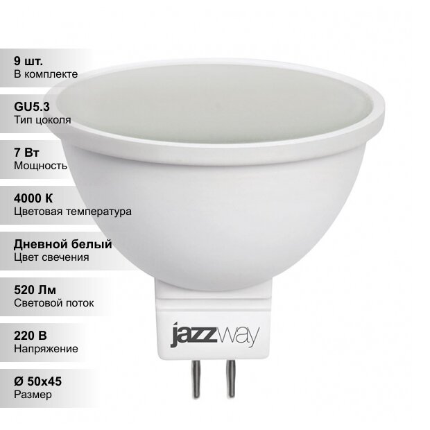 Купить (9 шт.) Светодиодная лампочка Jazzway JCDR 7Вт 230В 4000K GU5.3