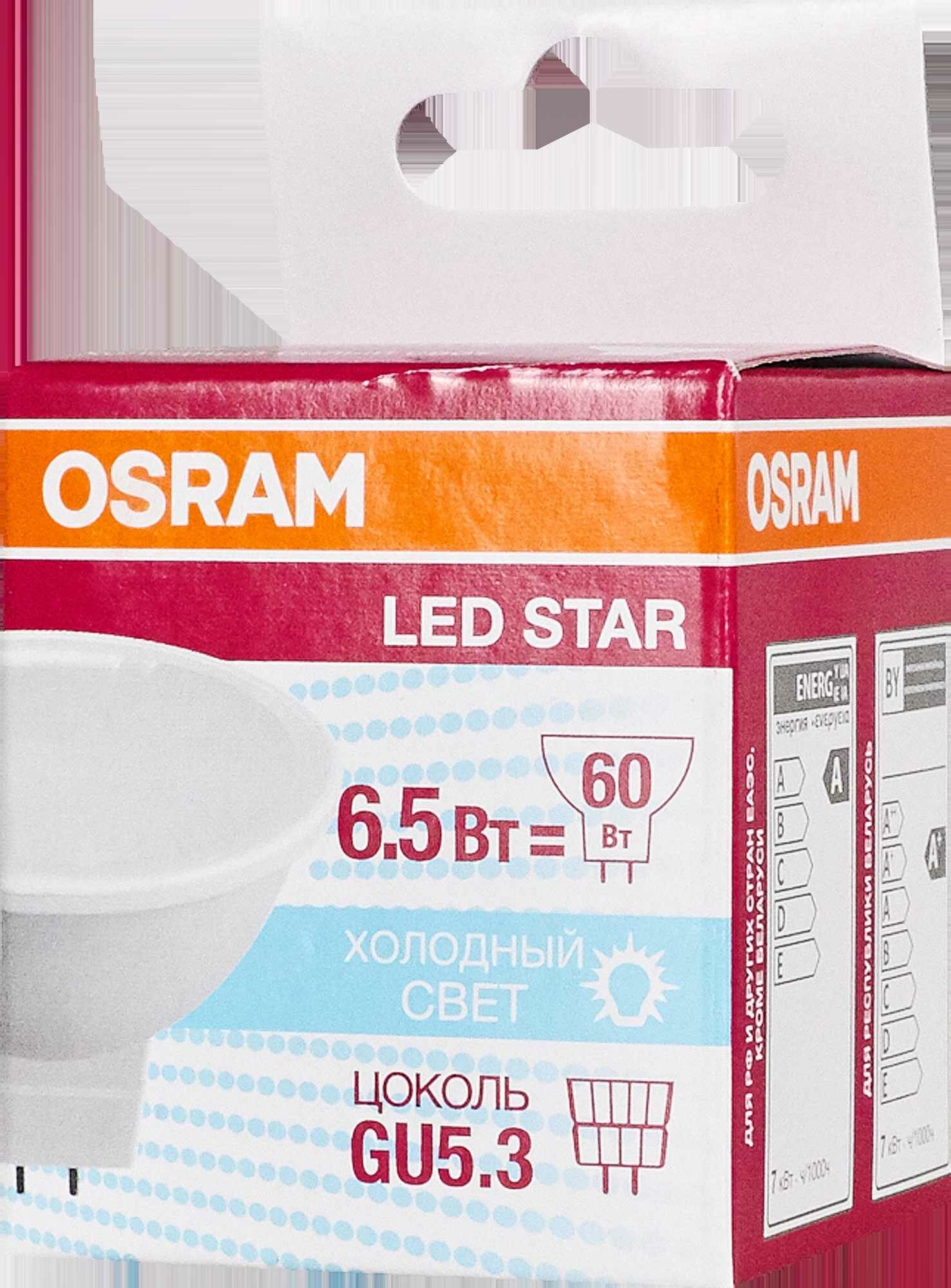 Osram Светодиодная лампа LED STAR MR16 65Вт GU5.3 500 Лм 4000К Нейтральный белый свет 4058075480582
