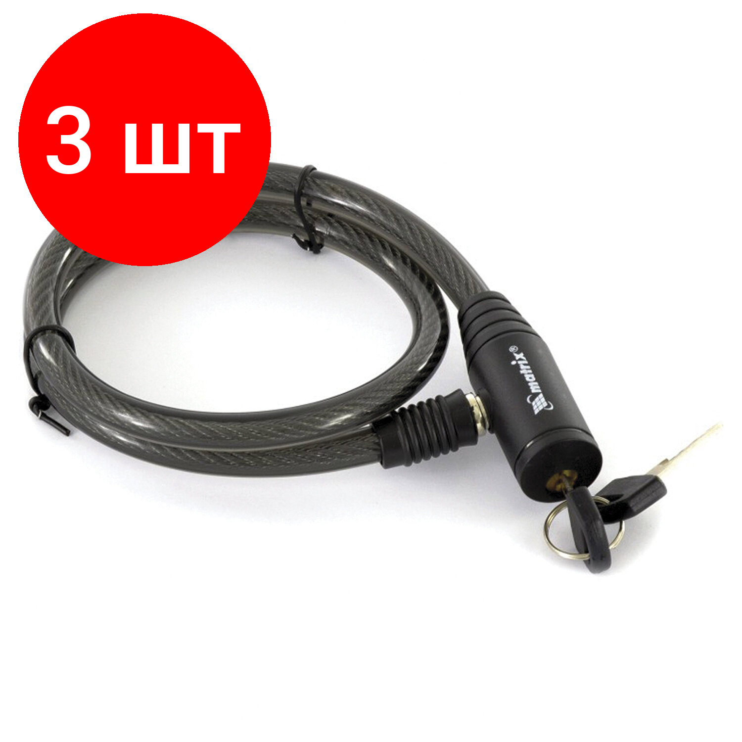 3 шт, Замок тросовый велосипедный, стальной трос: диаметр 10 мм, длина 650 мм, 2 ключа, MATRIX, 91814