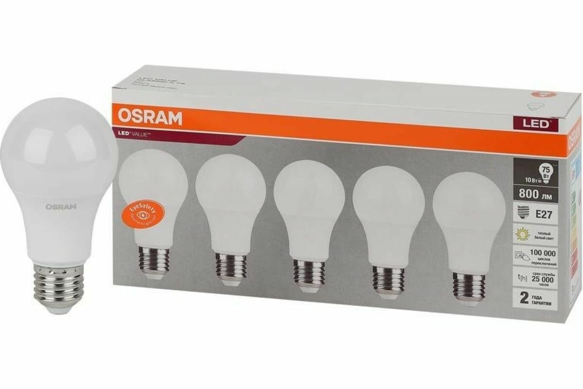 Лампочка светодиодная OSRAM LED Value E27 4000К А60 груша 10Вт 800Лм 4058075577749 (упаковка из 5 шт)