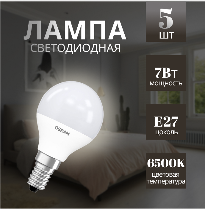 Лампочка светодиодная OSRAM LED Value E27 3000К P шар 7Вт 560Лм 4058075578197 (упаковка из 5 шт)