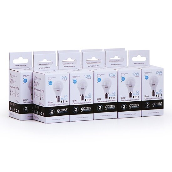 (5 шт)Лампа Gauss Elementary Шар 12W 920lm 4100K Е14 LED 1/10/100