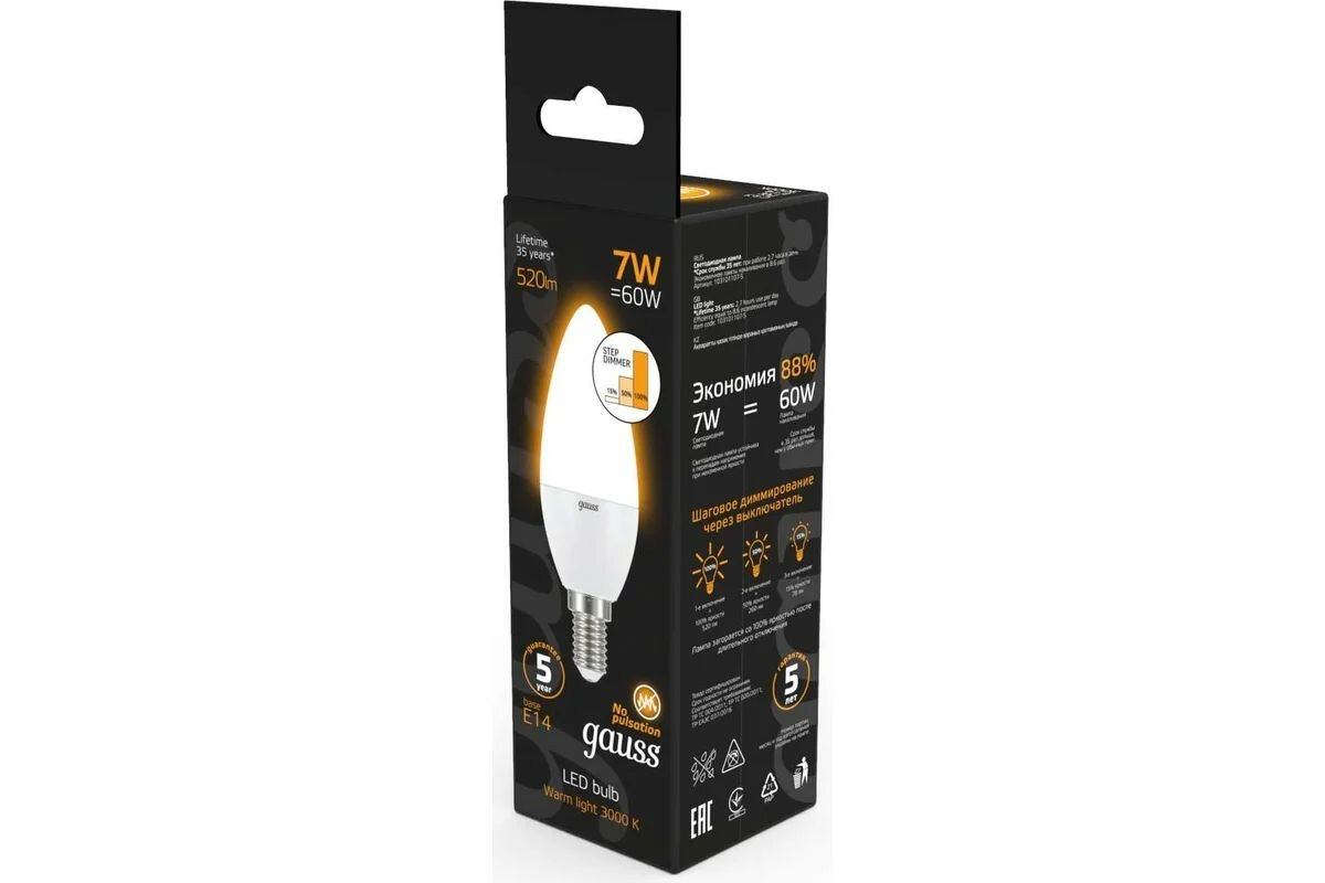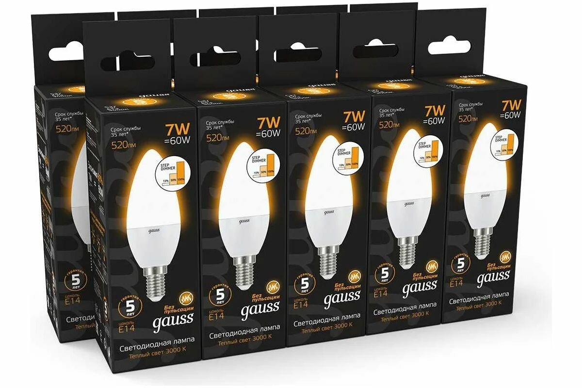 Gauss Лампа LED Свеча E14 7W 520lm 3000К step dimmable 103101107-S интересное: