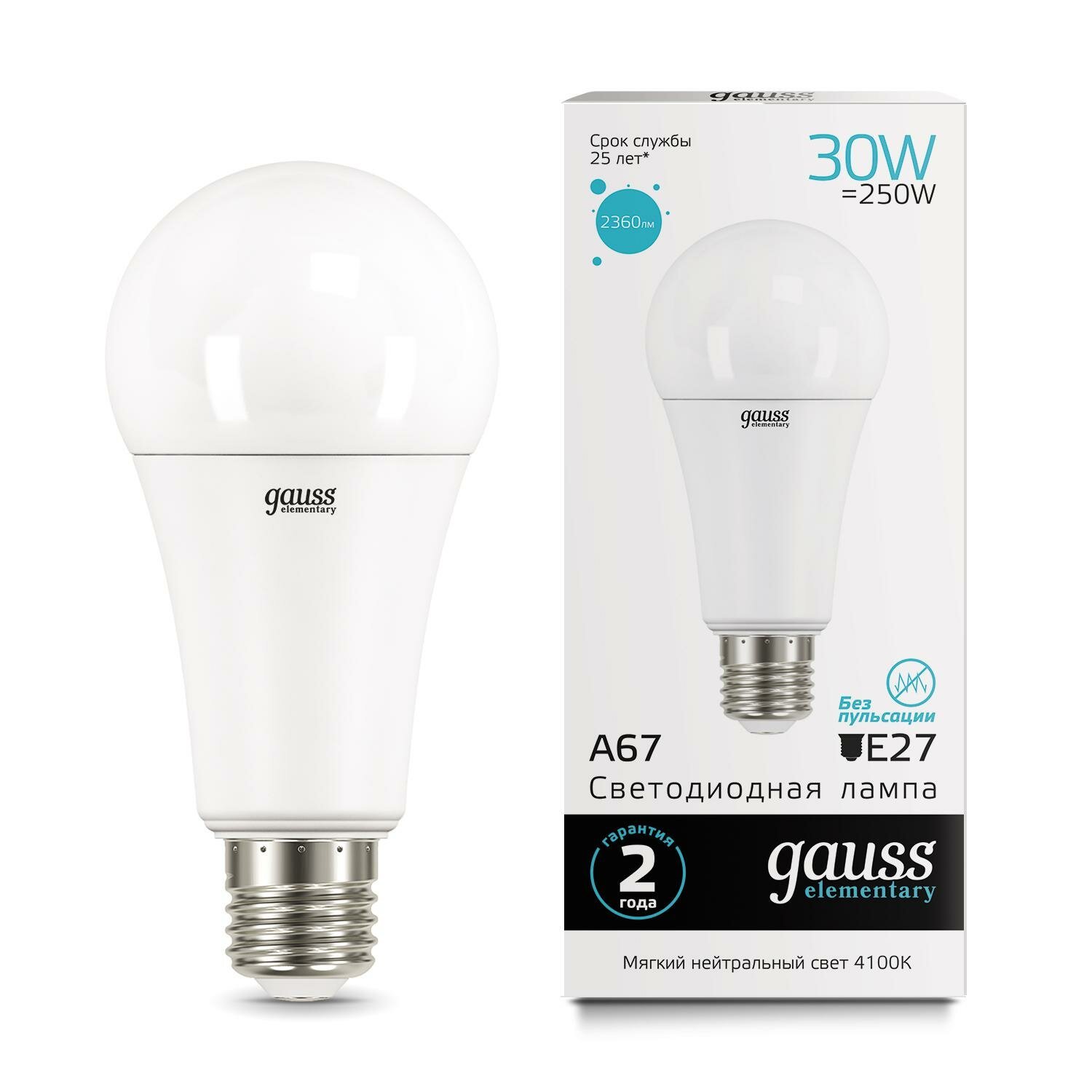 Лампочка светодиодная E27 A67 35W 2670lm 3000K УПАКОВКА 10 шт. Gauss Elementary