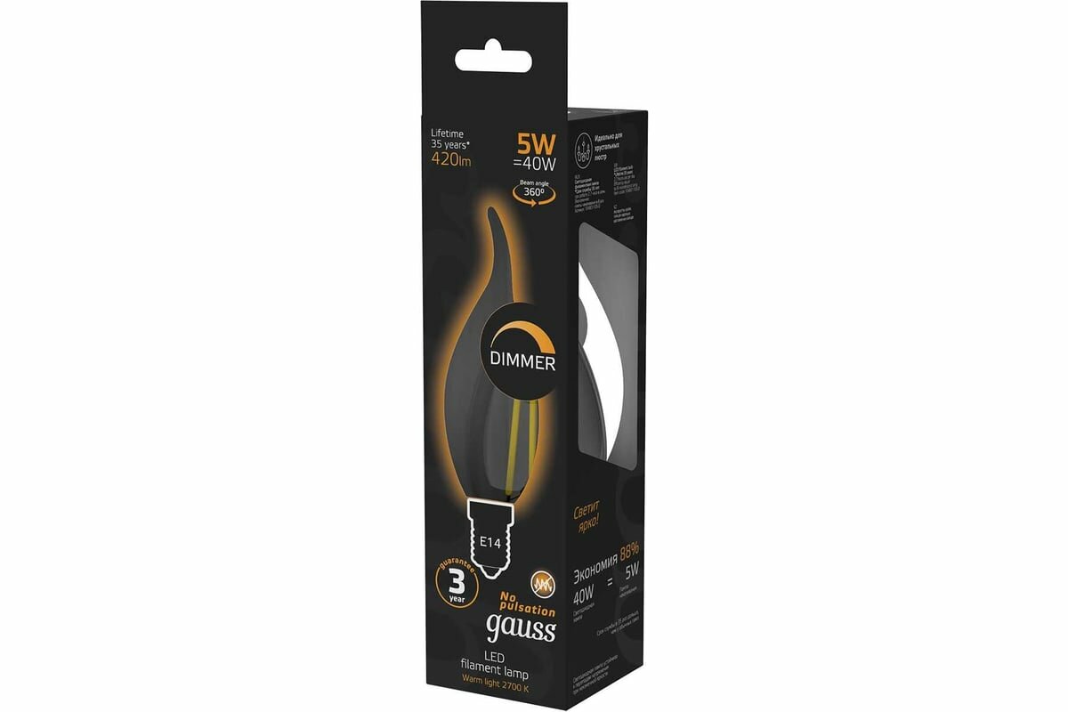 Ниже Вы можете прочитать отзывы на Gauss Лампа LED Filament Свеча на ветру dimmable E14 5W 420lm 2700K SQ 104801105-D, ознакомится с подробными характеристиками, посмотреть интересные обзоры и фотографии на Gauss Лампа LED Filament Свеча на ветру dimmable E14 5W 420lm 2700K SQ 104801105-D.