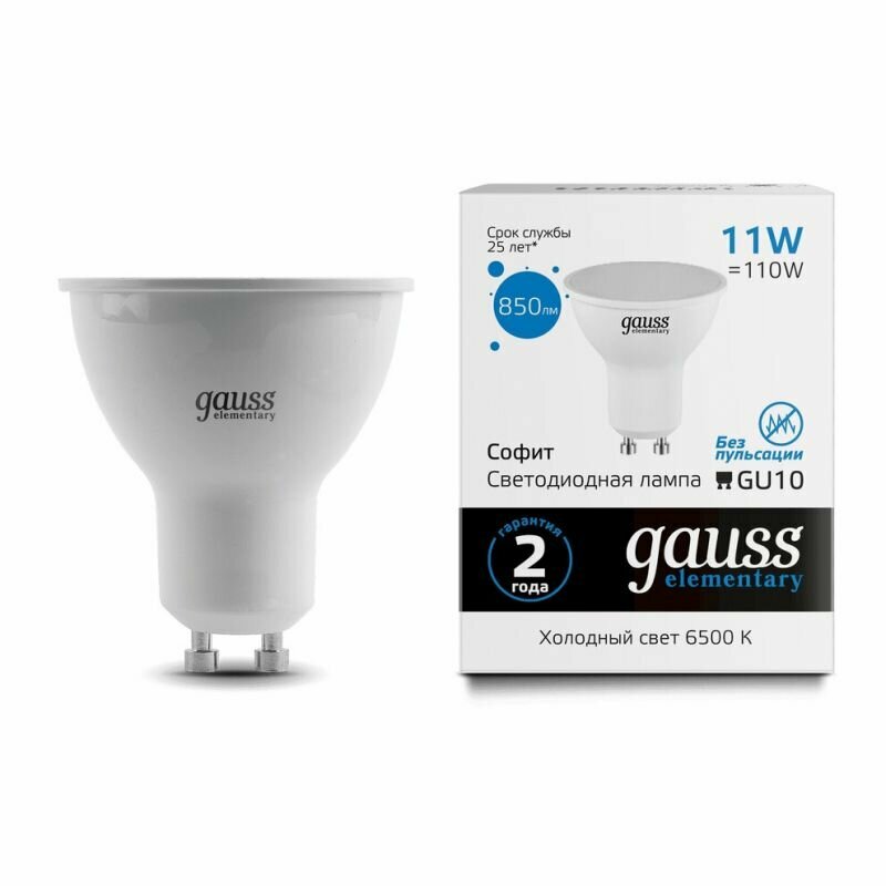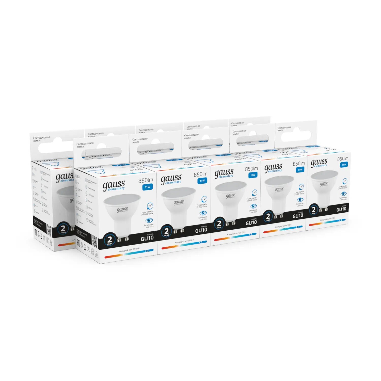 Купить Лампочка светодиодная MR16 GU10 11W холодный свет 6500K упаковка 10 шт. Gauss Elementary