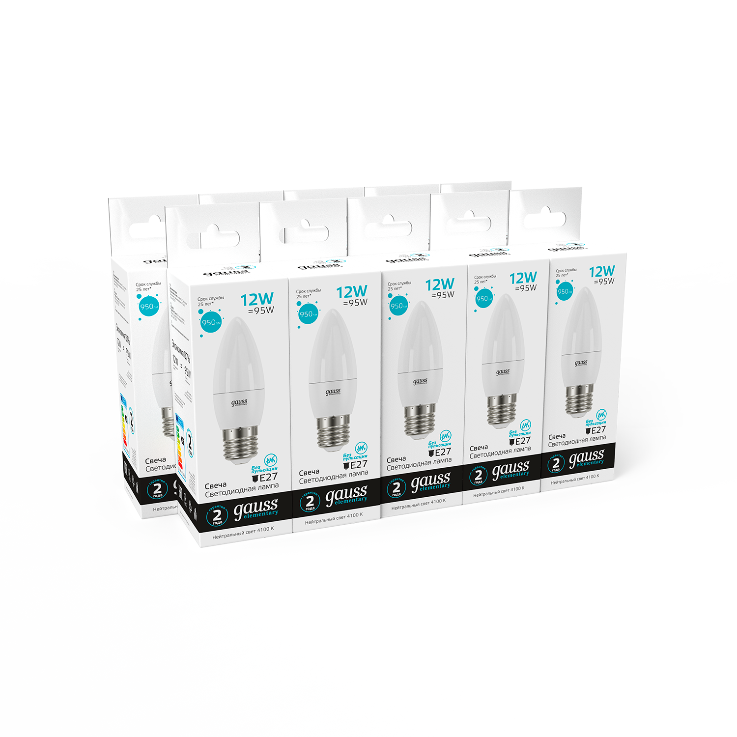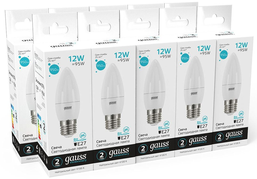 Упаковка ламп 10 штук Gauss Elementary Свеча 12W 950lm 4100K E27 LED 1/10/100