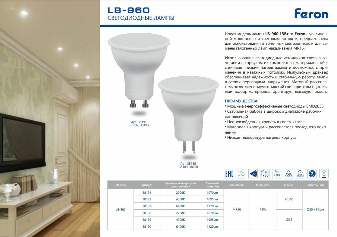 Ниже Вы можете прочитать отзывы на Лампа светодиодная FERON 13Вт 230В GU10 MR16 6400K, LB-960, 10 шт, ознакомится с подробными характеристиками, посмотреть интересные обзоры и фотографии на Лампа светодиодная FERON 13Вт 230В GU10 MR16 6400K, LB-960, 10 шт.
