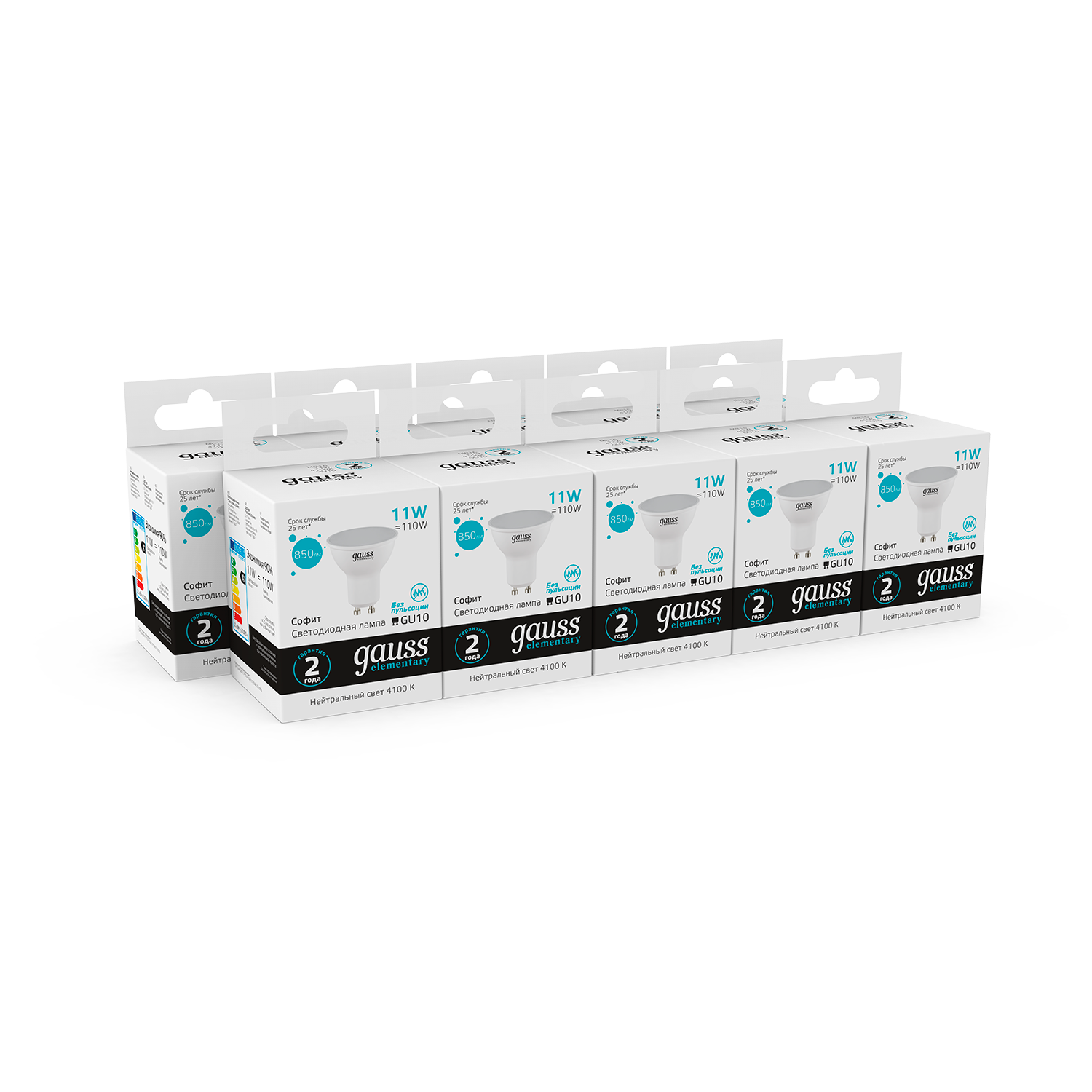 Светодиодная лампа Gauss Elementary MR16 11W 850lm 4100K GU10 LED (10шт)