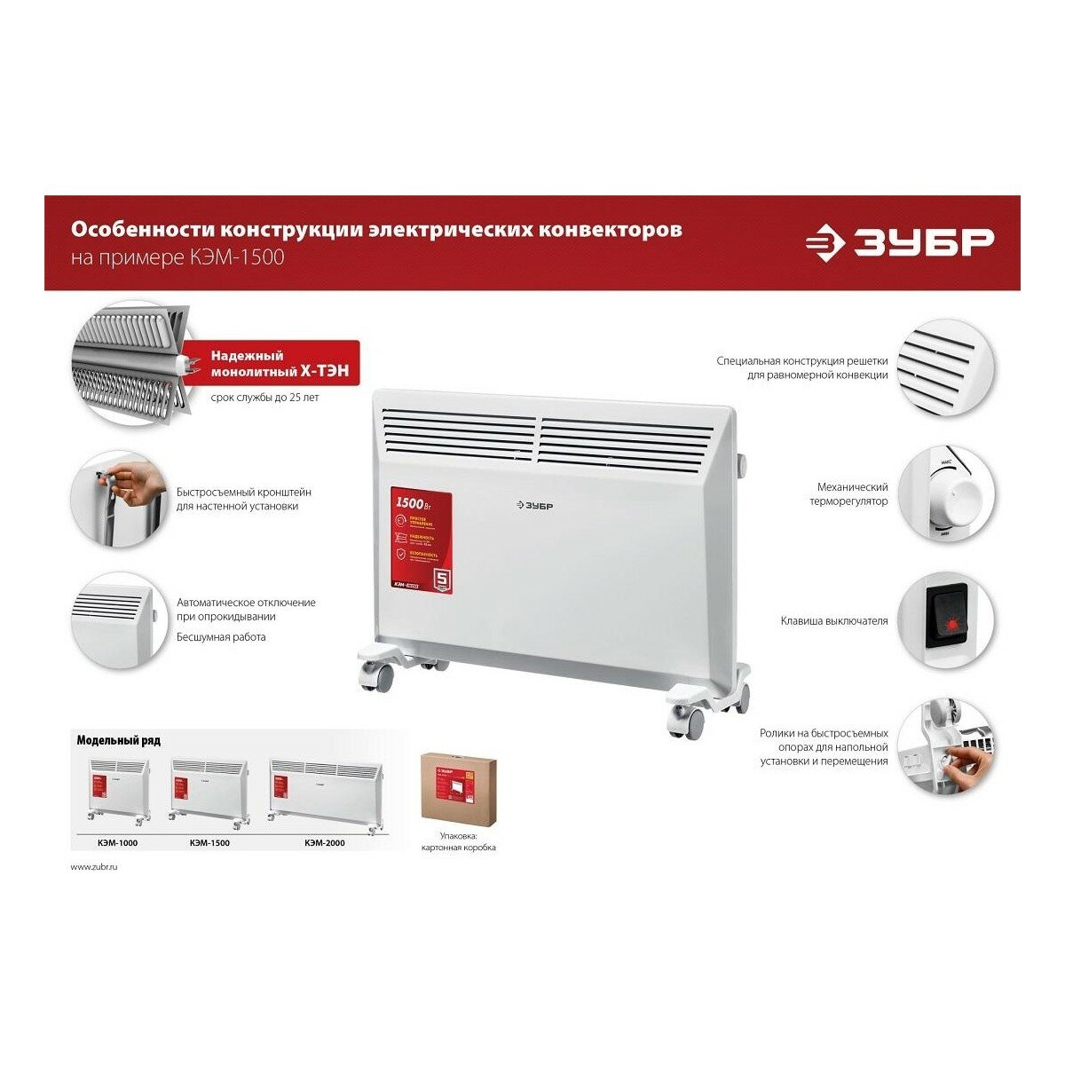 Электрический конвектор ЗУБР, КЭМ-1500