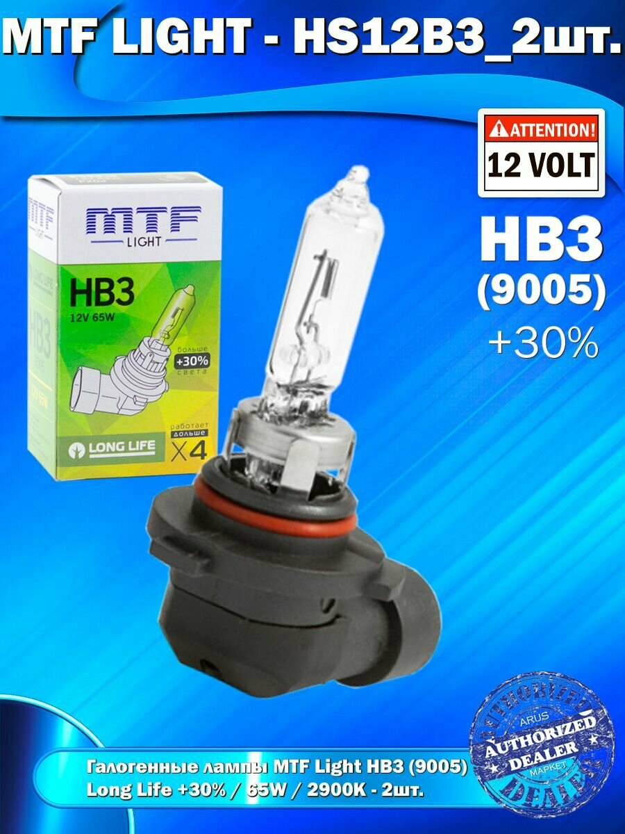 MTF-LIGHT HS12B3 Лампа галоген 12V HB3 65W P20d MTF 9005 Longlife Standart +30% 2900К