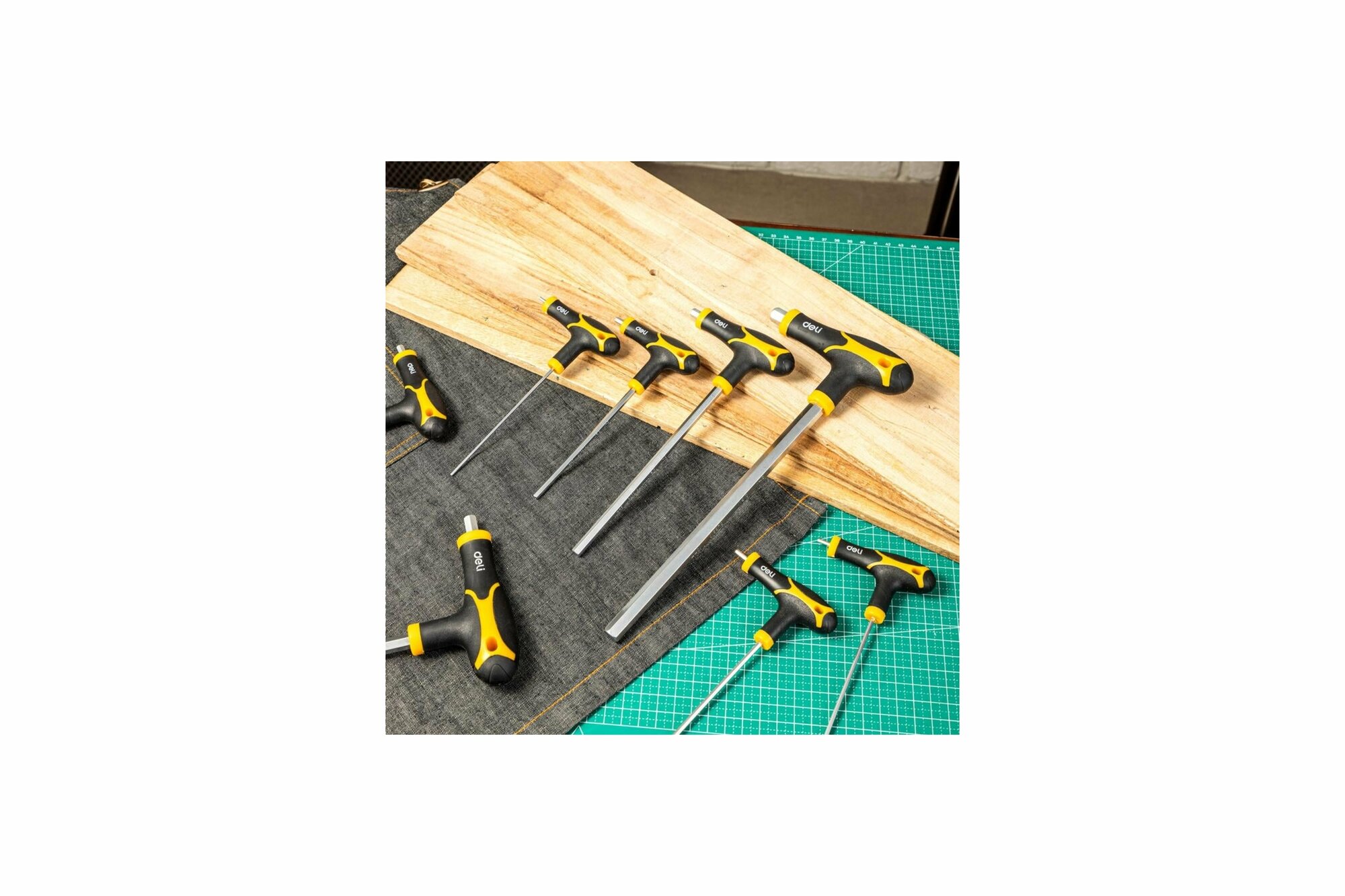 Набор из 8 шестигранных двусторонних ключей с Т-образной ручкой Deli DL233108 (от 2x75мм до 10x200мм, удобная рукоять,CR-V)