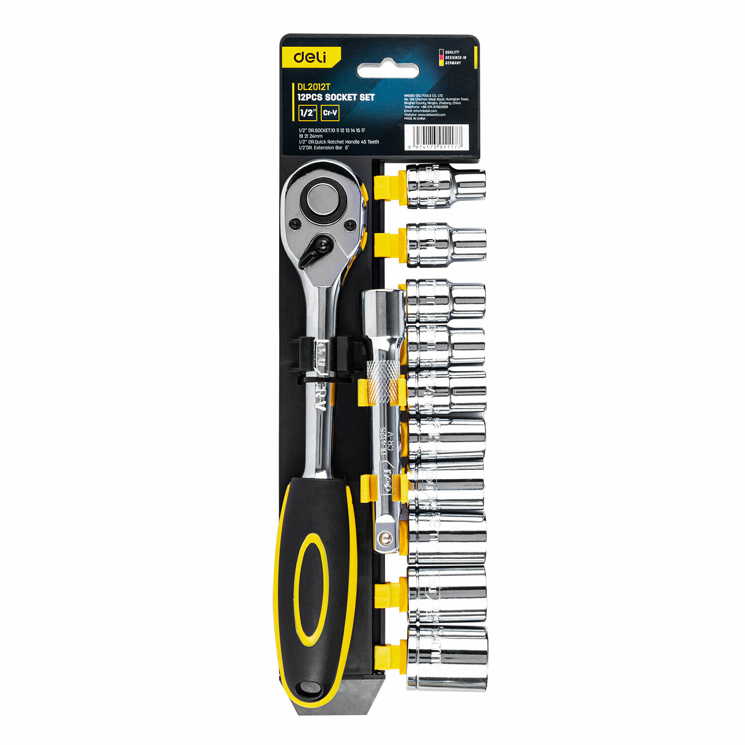 Набор торцевых ключей Deli Dl2012t 12 шт,1/2",50BV30,головка серии 6,3 мм,10 шт(10-24мм) .