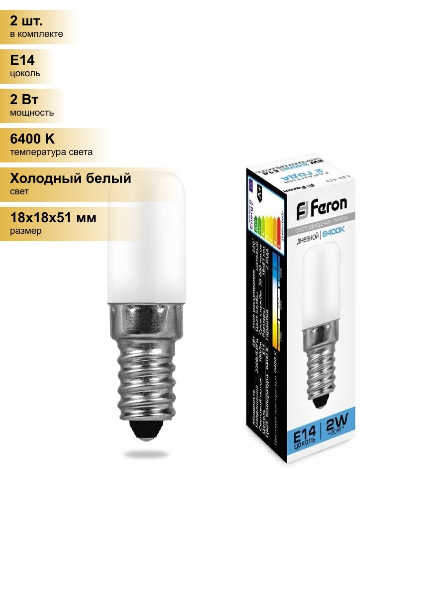 Купить (2 шт.) Светодиодная лампочка Feron лампа св/д для холодильников E14 2W(160lm) 6400K 6K матовая 51x18, LB-10 25988 Холодный белый. Цоколь E14
