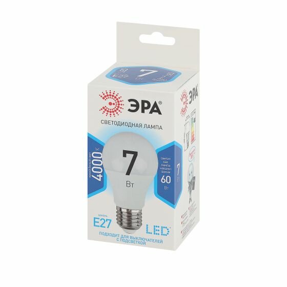 Купить Лампа светодиодная ЭРА STD LED Б0029820, Е27, 7Вт, груша, нейтральный белый свет, 5 шт.