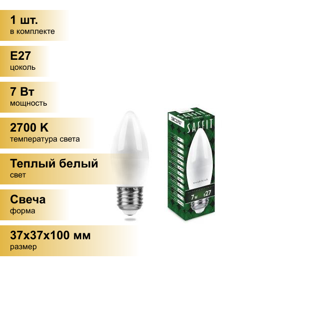 Лампа светодиодная SAFFIT SBC3707 Свеча E27 7W 2700K 55032 5 штук