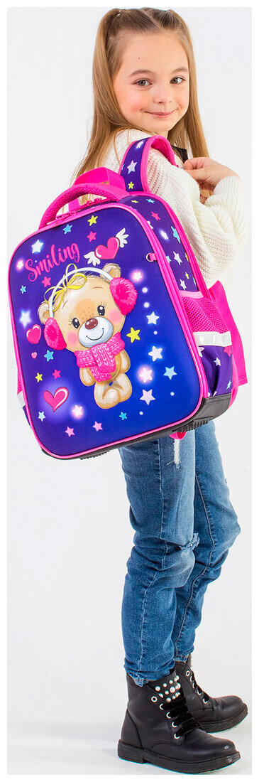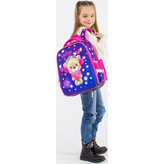 Ранец ортопедический школьный Brauberg для девочки, 2 отделения, smiling bear, 3d-панель, 38х27х14 см (270614)