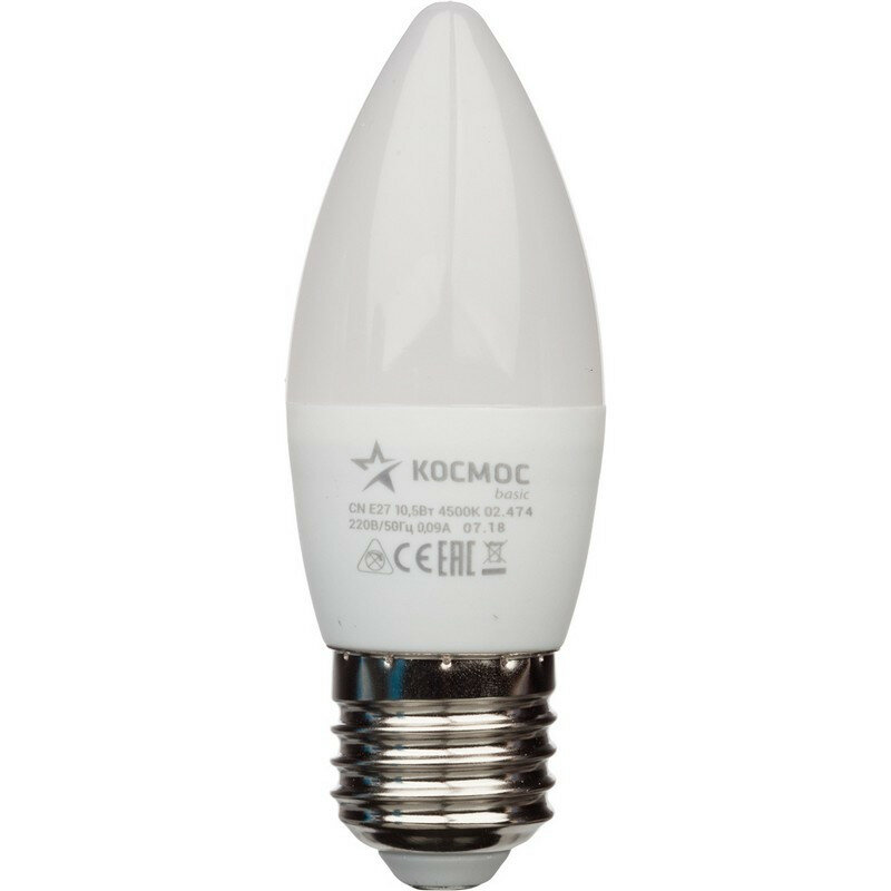 Светодиодная лампа Космос, 10.5 Вт, E27, 3000 K, свеча, LED10.5wCNE2730, теплый белый