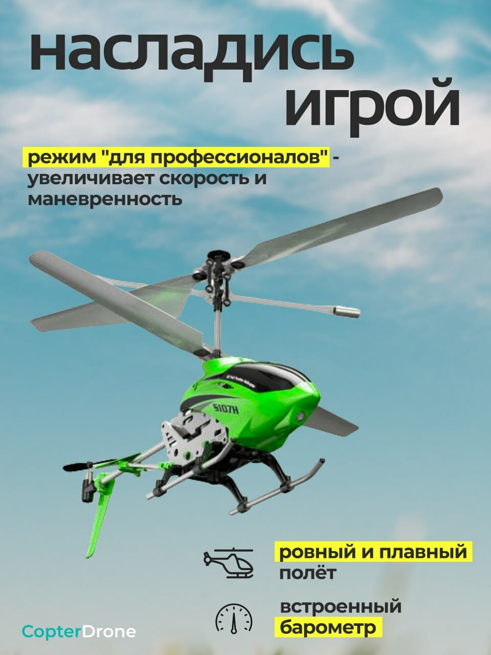 СохранитьРадиоуправляемый вертолет Syma S107H Green 2.4G с функцией зависания - S107H (SYMA-S107H-GREEN) интересное: