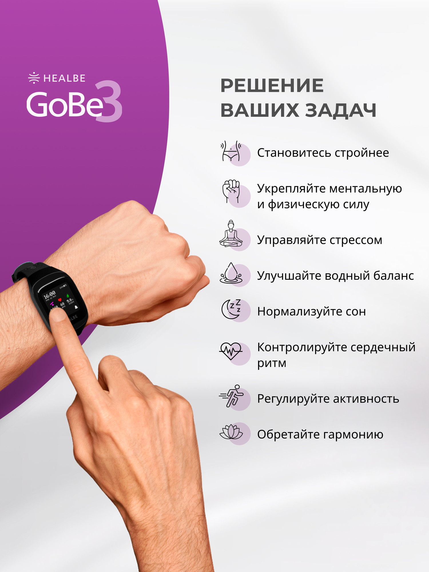 Купить Умные часы HEALBE GoBe3 для здоровья: счетчик калорий, стресс, трекер сна, умный будильник, пульсометр, нехватка воды; мужские / женские