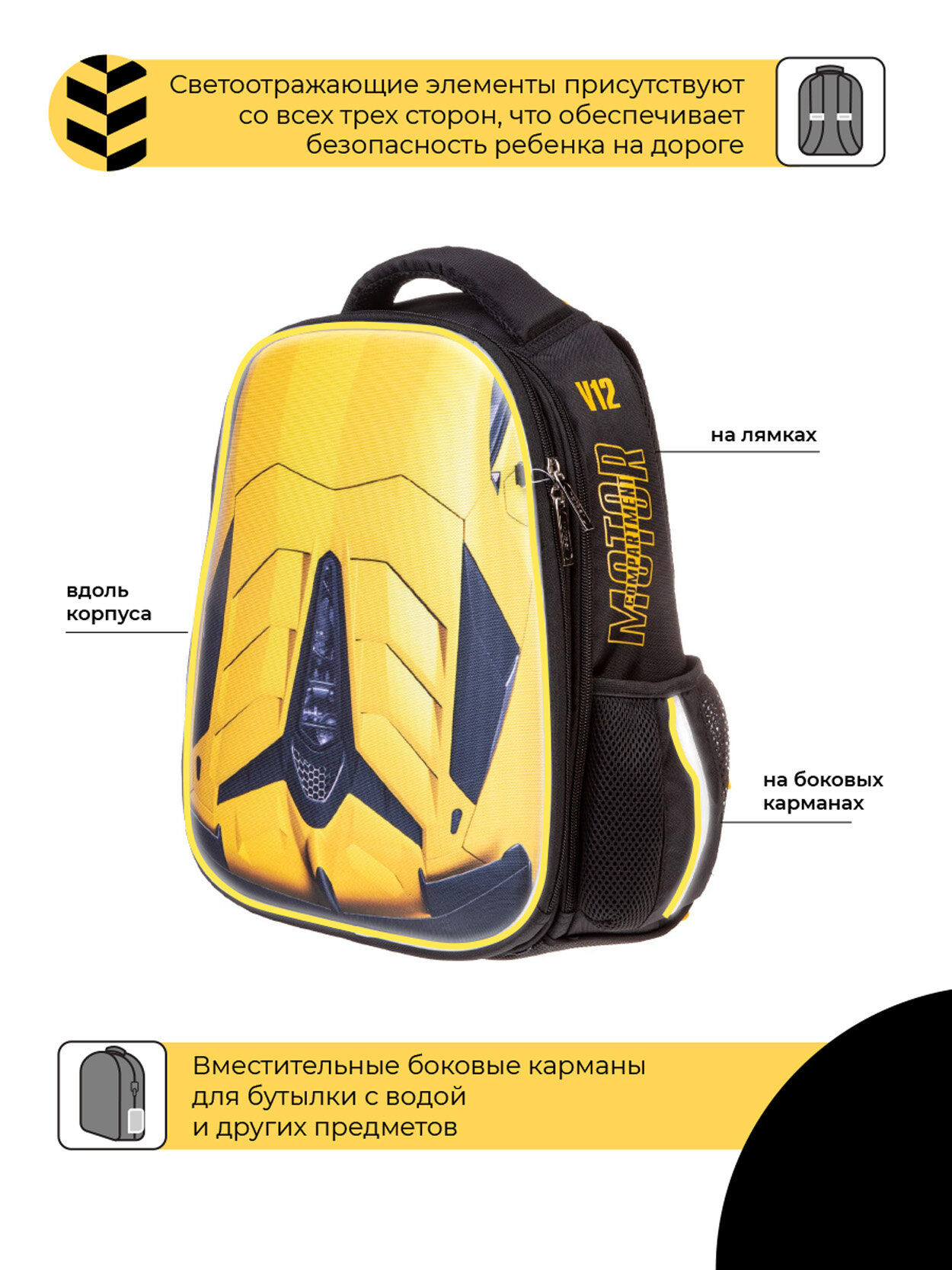 Рюкзак каркасный 38 х 29 х 15 см, Hatber Ergonomic light "Скорость и мощь", жёлтый NRk_71044