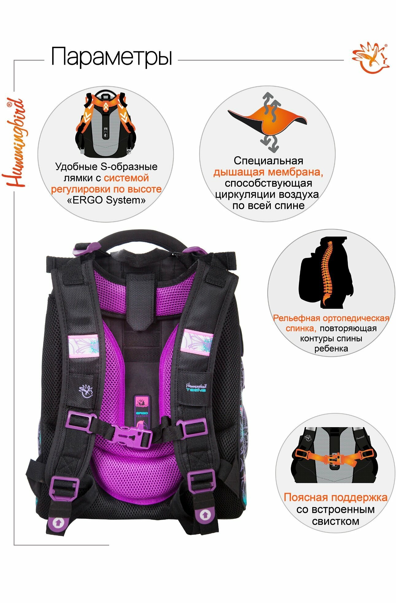 Ранец / рюкзак / портфель школьный для девочки первоклассницы Hummingbird, ортопедический, 2 отделения интересное: