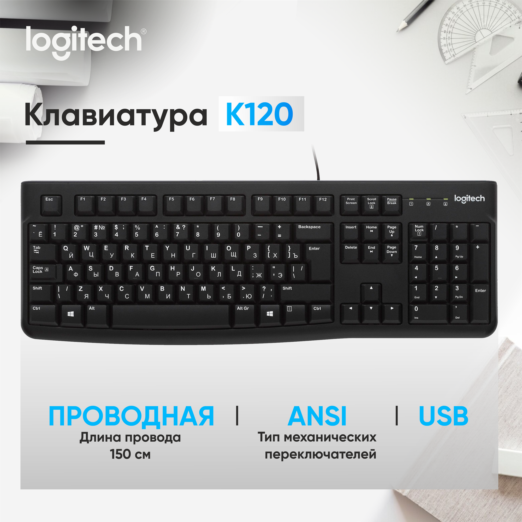 Клавиатура Logitech K120, USB, черный [920-002583]