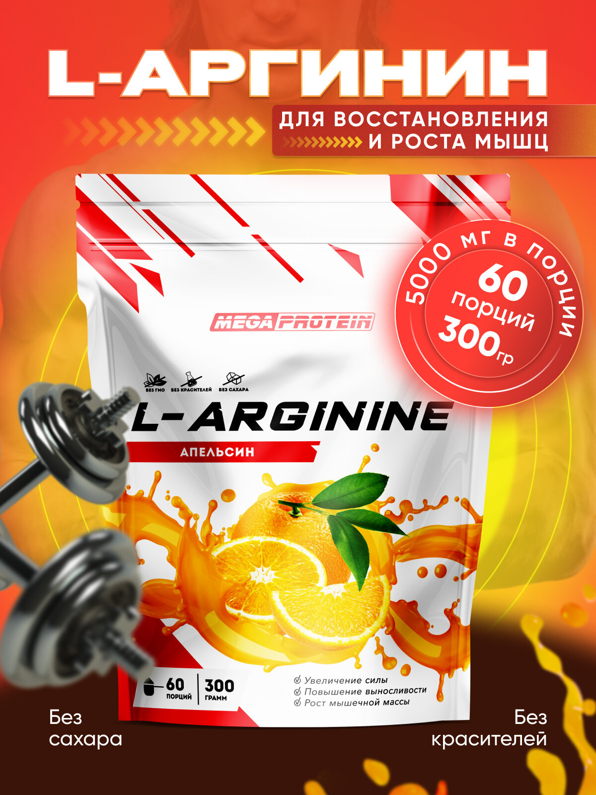 СохранитьАминокислоты аргинин Megaprotein, 300 г/ 60 порций, Апельсин интересное: