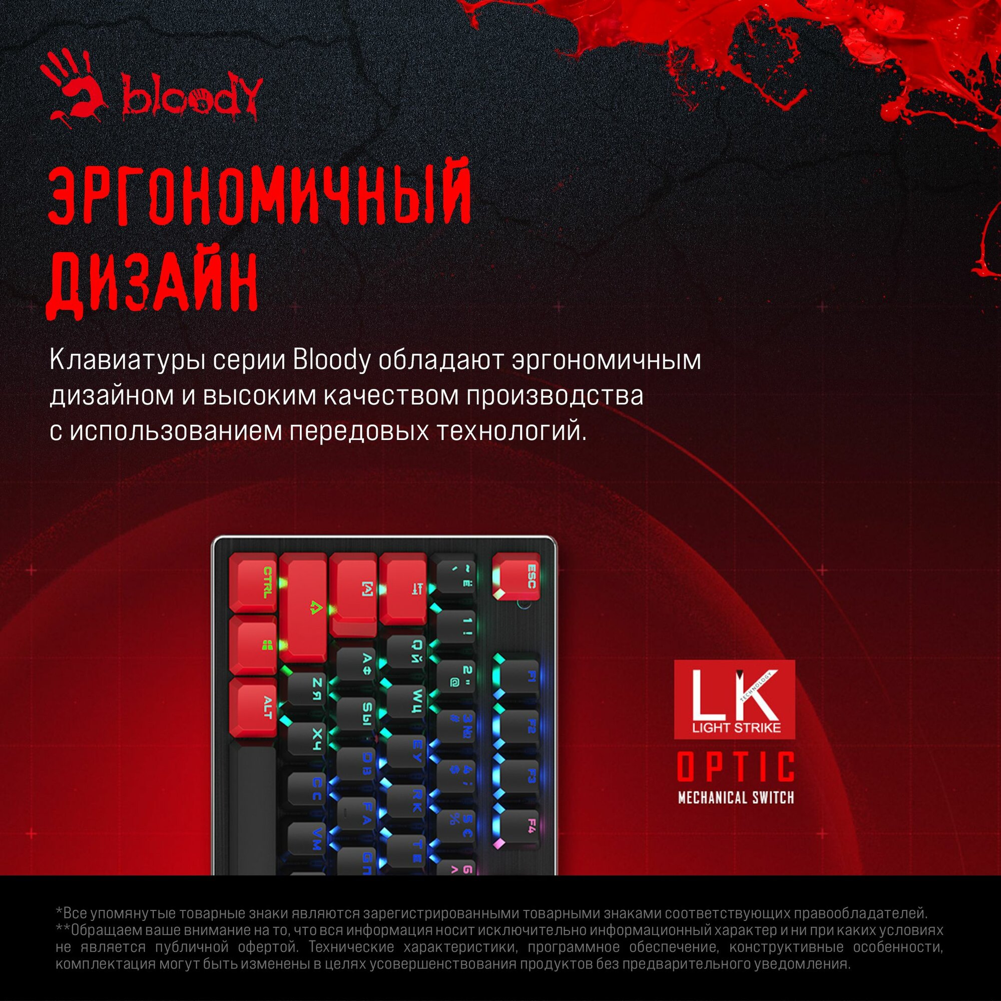 Клавиатура A4TECH Bloody B820N черный/красный (B820N (BLACK + RED))