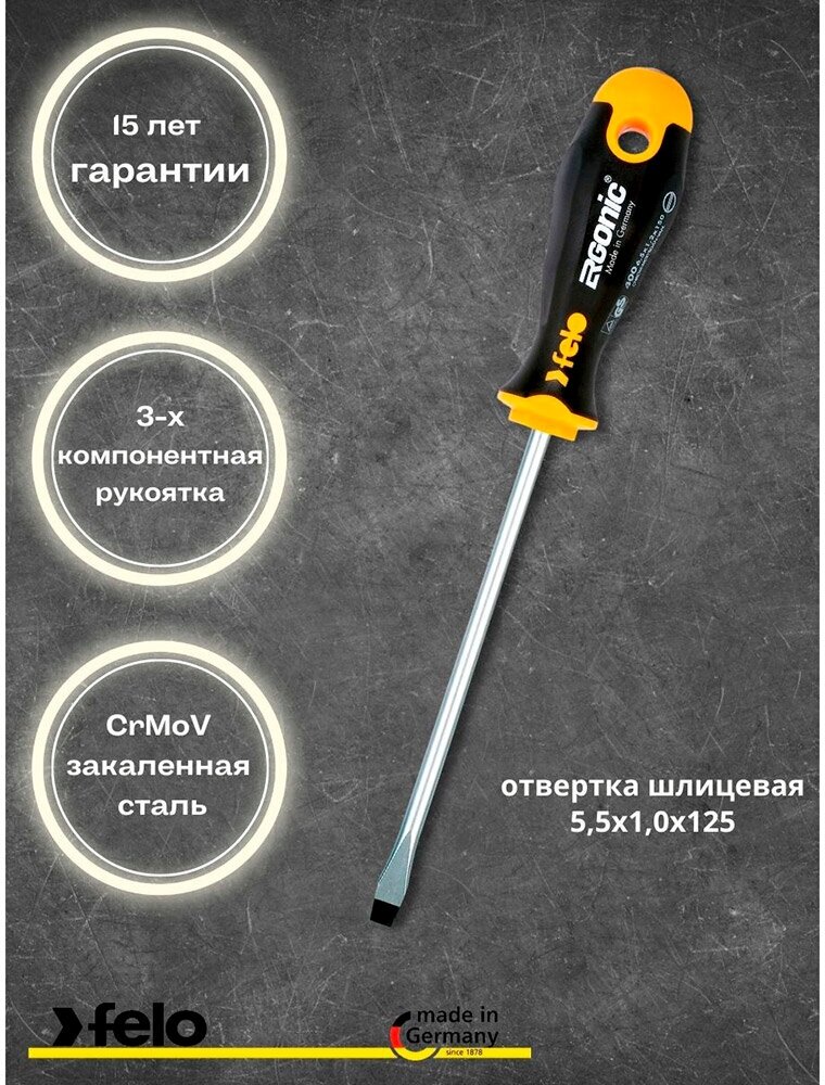 Отвертка плоская шлицевая Felo Ergonic 5,5X1,0X125