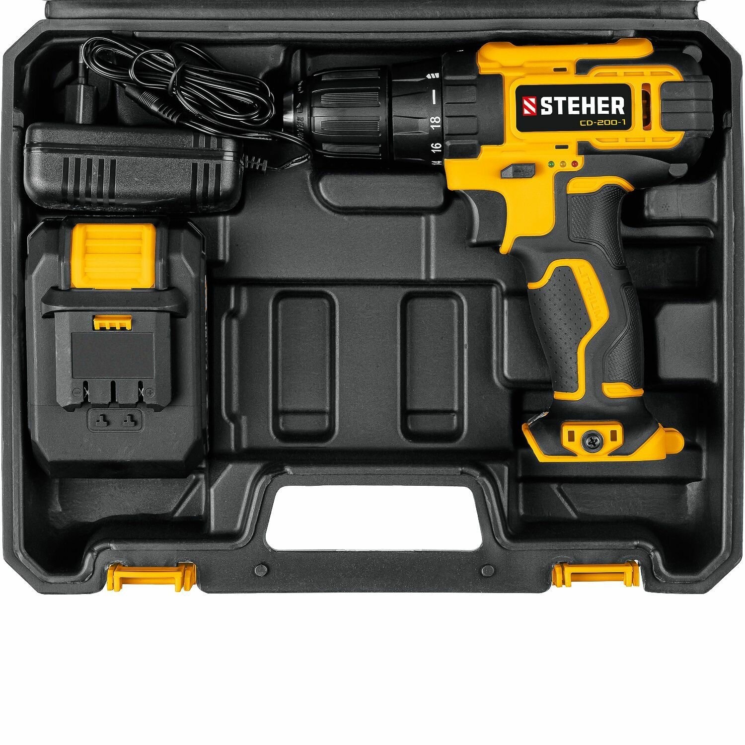 Купить Дрель-шуруповерт, кейс (CD-200-1) STEHER V1, 20 В, 40 Н·м, 1 АКБ (2 А·ч)