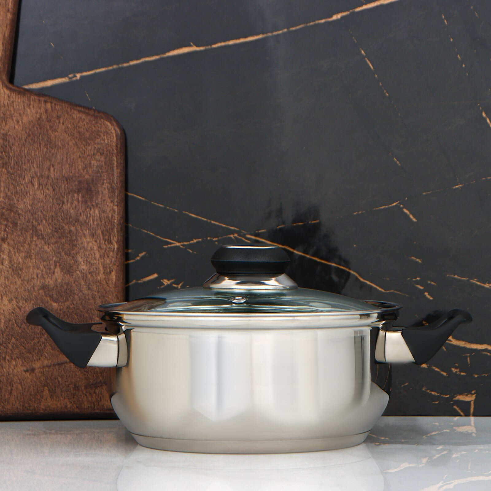 Купить Кастрюля, 1,9 л, d=18 см, стеклянная крышка, с теплораспределительным слоем, индукция