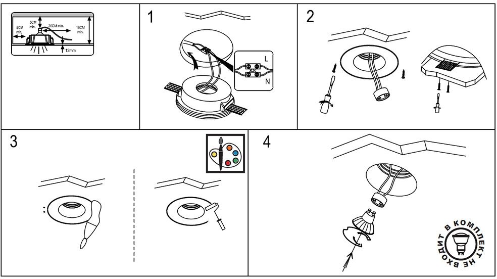 370478 SPOT NT19 154 белый Встраиваемый под покраску светильник IP20 GU10 50W 220V YESO