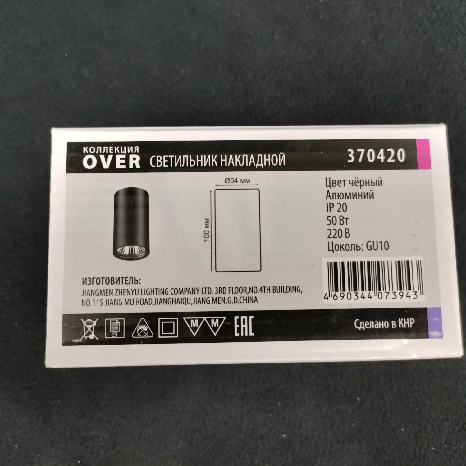 370420 OVER NT19 215 черный Накладной светильник IP20 GU10 50W 220V PIPE