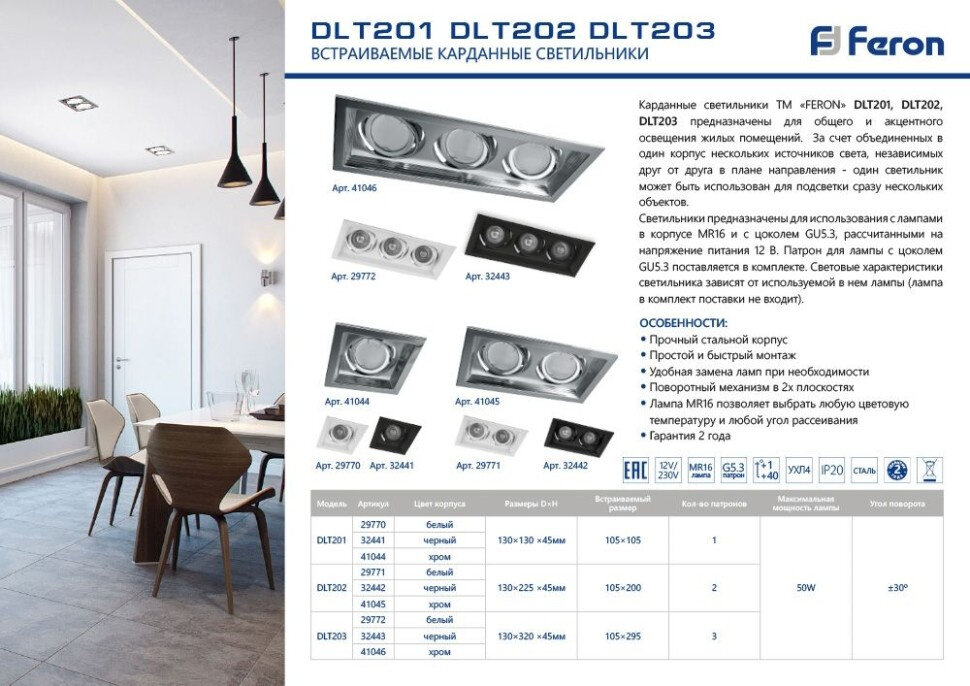 | Дополнительная информация | тип лампы MR16; лампа в комплект поставки не входит |