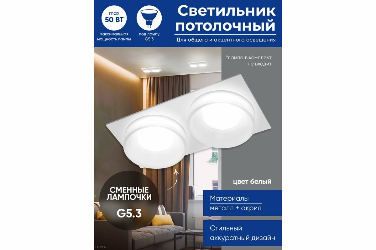 Светильник потолочный встраиваемый ИВО белый 50Вт под лампу G5.3 DL2902, 41135