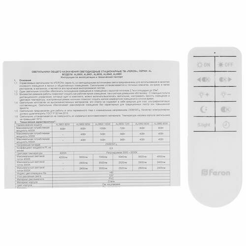 Feron Светильник светодиодный управляемый с пультом 80W, Max. 4800Lum 1 шт.