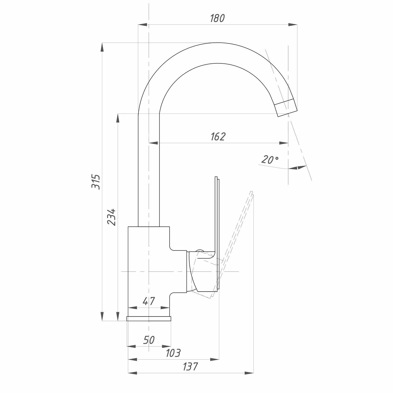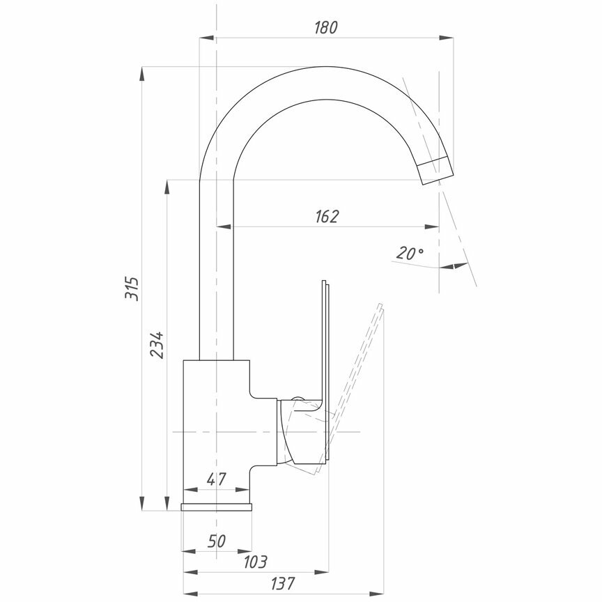 | Высота излива | 315 мм |