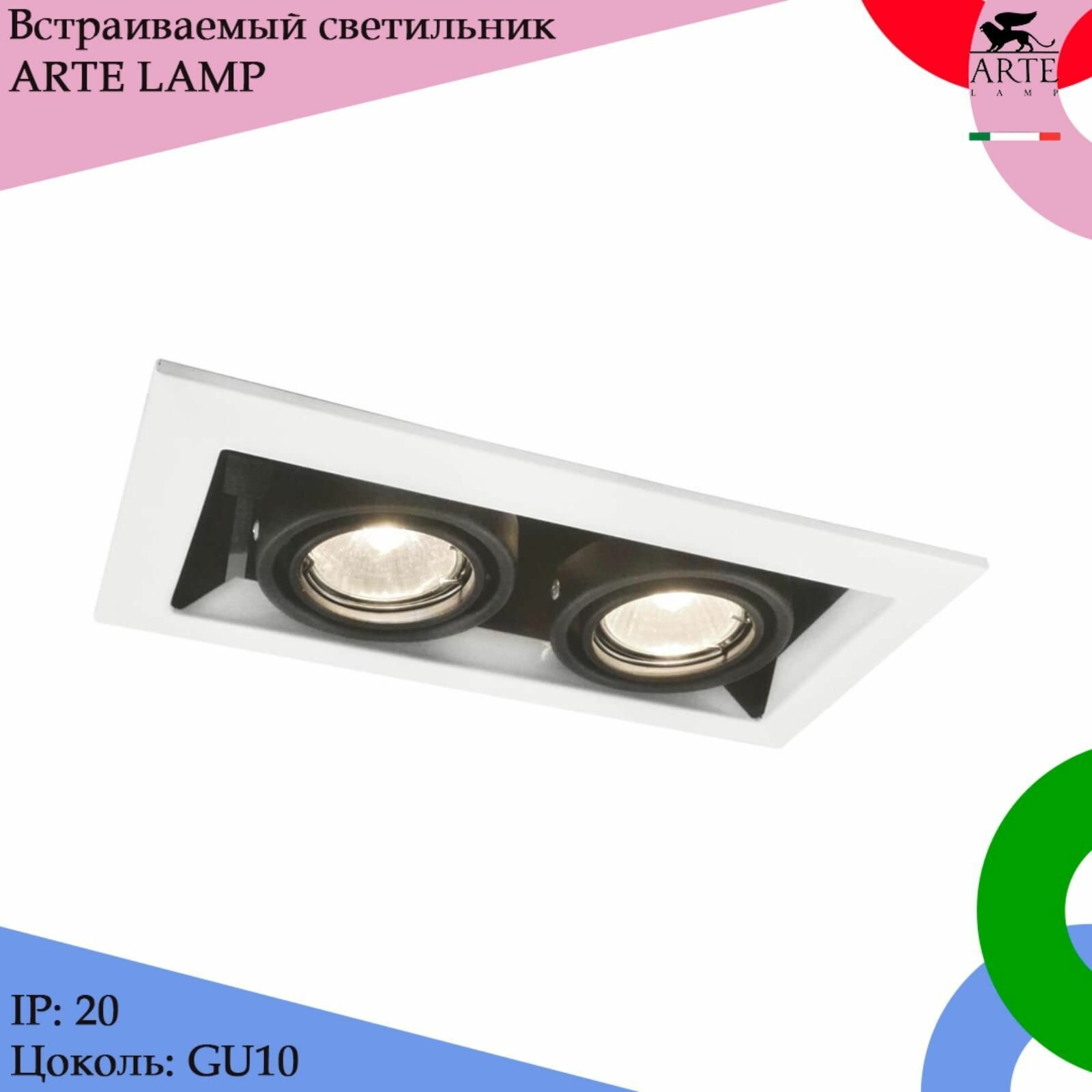 Купить Встраиваемый светильник Arte Lamp Cardani Piccolo A5931PL-2WH, GU10, кол-во ламп:2шт., Белый