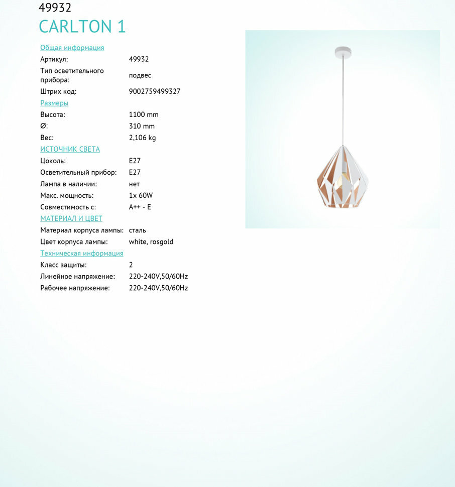 Ниже Вы можете прочитать отзывы на 49932 Светильник подвесной EGLO CARLTON, ознакомится с подробными характеристиками, посмотреть интересные обзоры и фотографии на 49932 Светильник подвесной EGLO CARLTON.