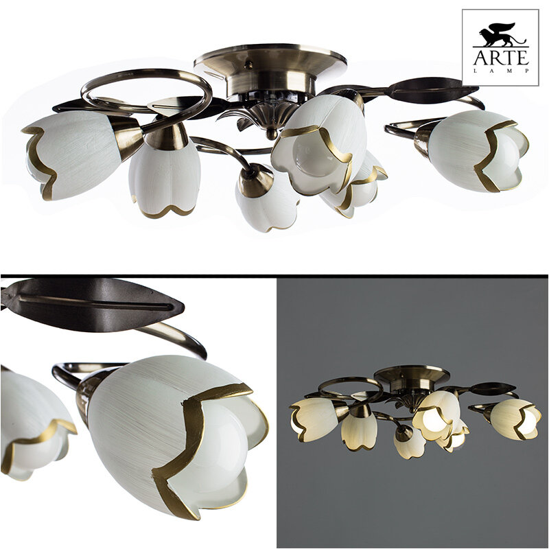 Потолочная люстра Arte Lamp PERCE A6061PL-6AB Античная бронза / Белый
