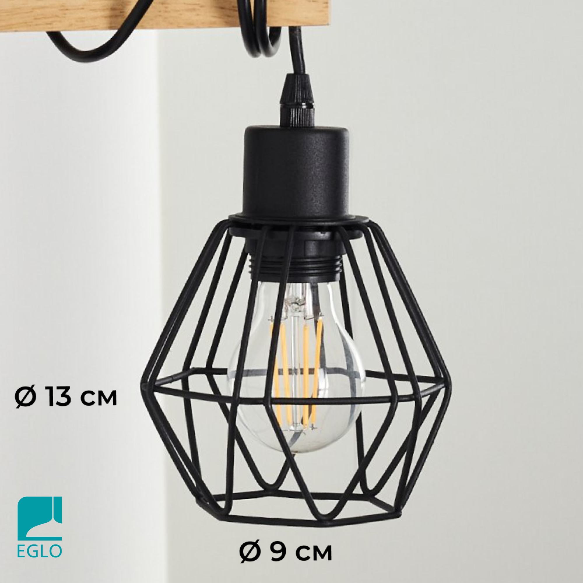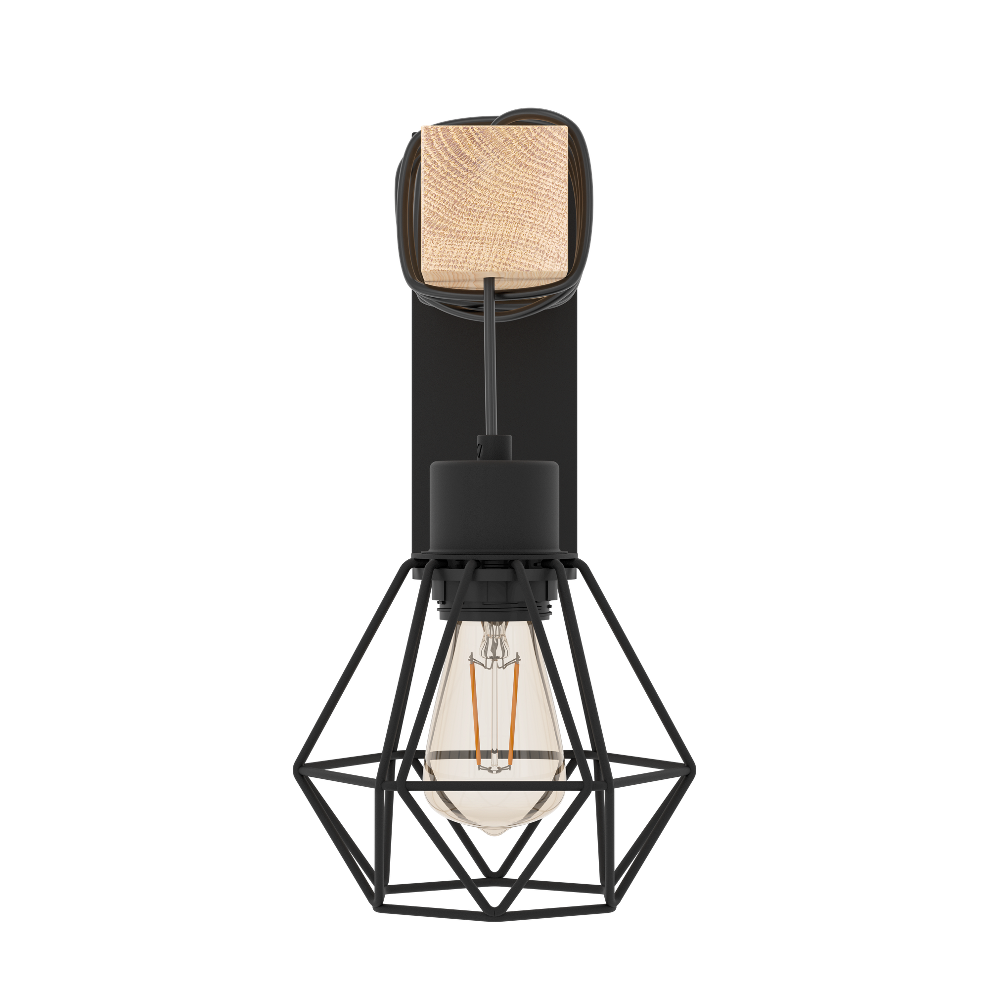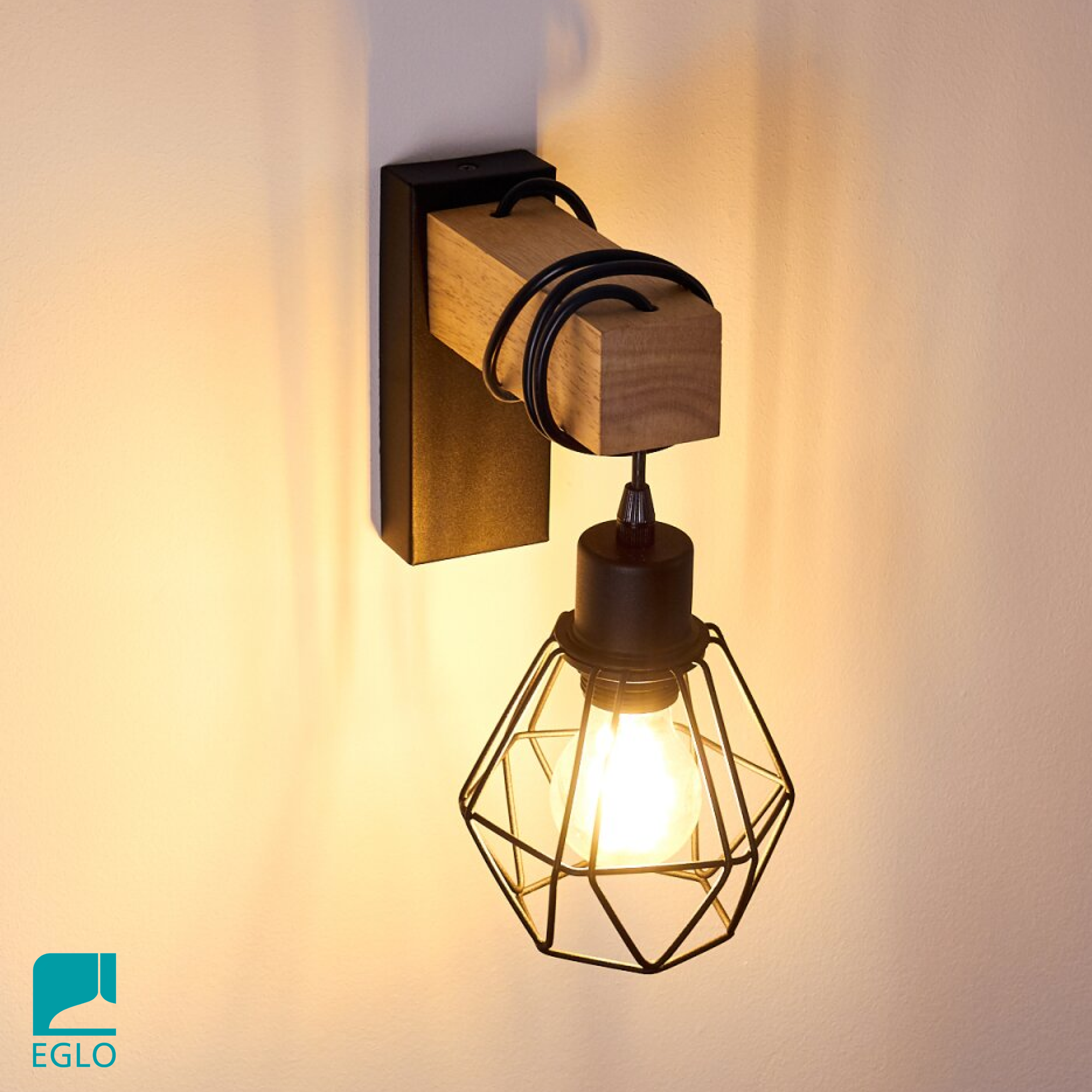 Бра настенный из натурального дерева EGLO Townshend 20, дизайнерский светильник для гостиной, ретро лампа для освещения спальни, прихожей, с черным плафоном и проводом, натуральное дерево, E27, 60 Вт