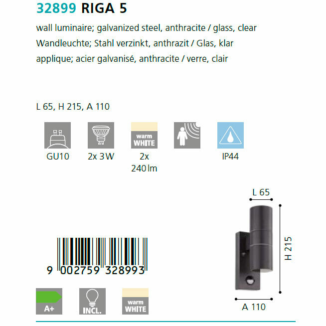 Ниже Вы можете прочитать отзывы на 32899 Cветильник уличный настенный с датчиком движения EGLO RIGA 5, ознакомится с подробными характеристиками, посмотреть интересные обзоры и фотографии на 32899 Cветильник уличный настенный с датчиком движения EGLO RIGA 5.