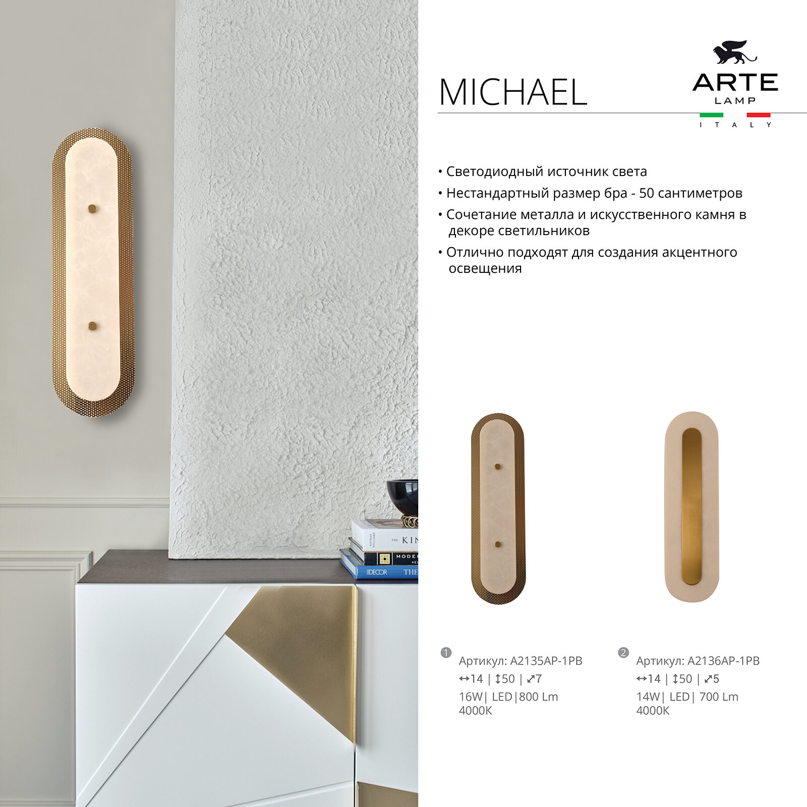 Ниже Вы можете прочитать отзывы на Настенный светодиодный светильник Arte Lamp Michael A2136AP-1PB, ознакомится с подробными характеристиками, посмотреть интересные обзоры и фотографии на Настенный светодиодный светильник Arte Lamp Michael A2136AP-1PB.